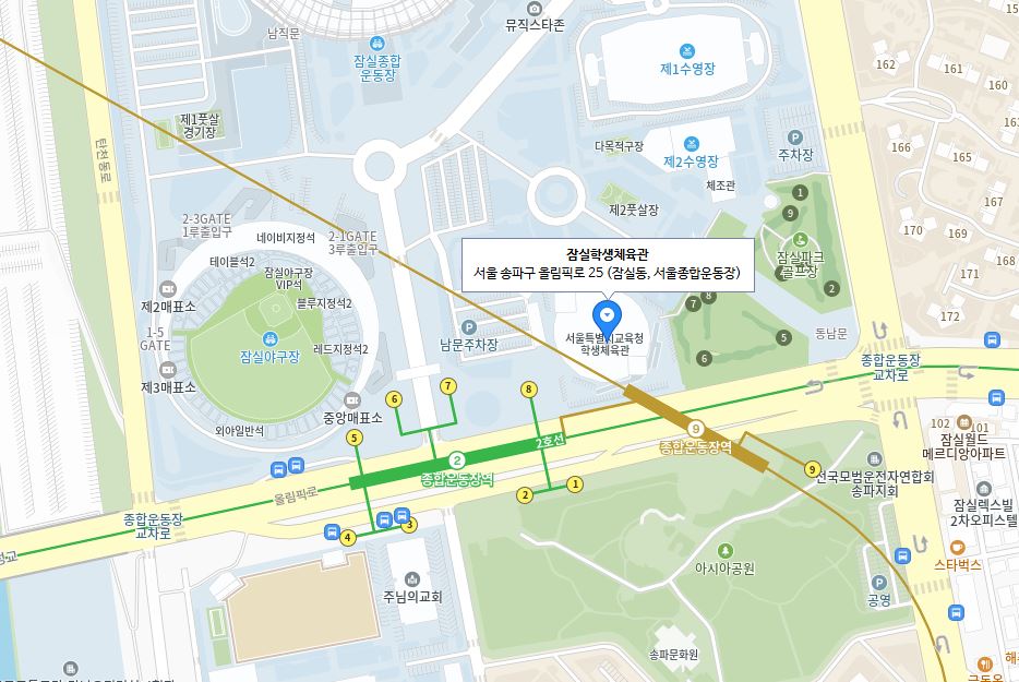 - 주차장: 올림픽공원 체조경기장 주차장 및 인근 주차장 이용 가능
