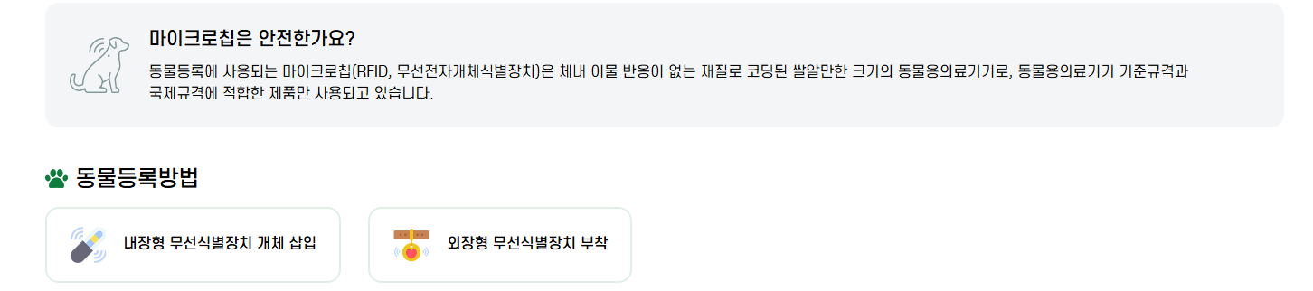 - 동물병원: 내장칩 리더기를 이용해 즉시 조회