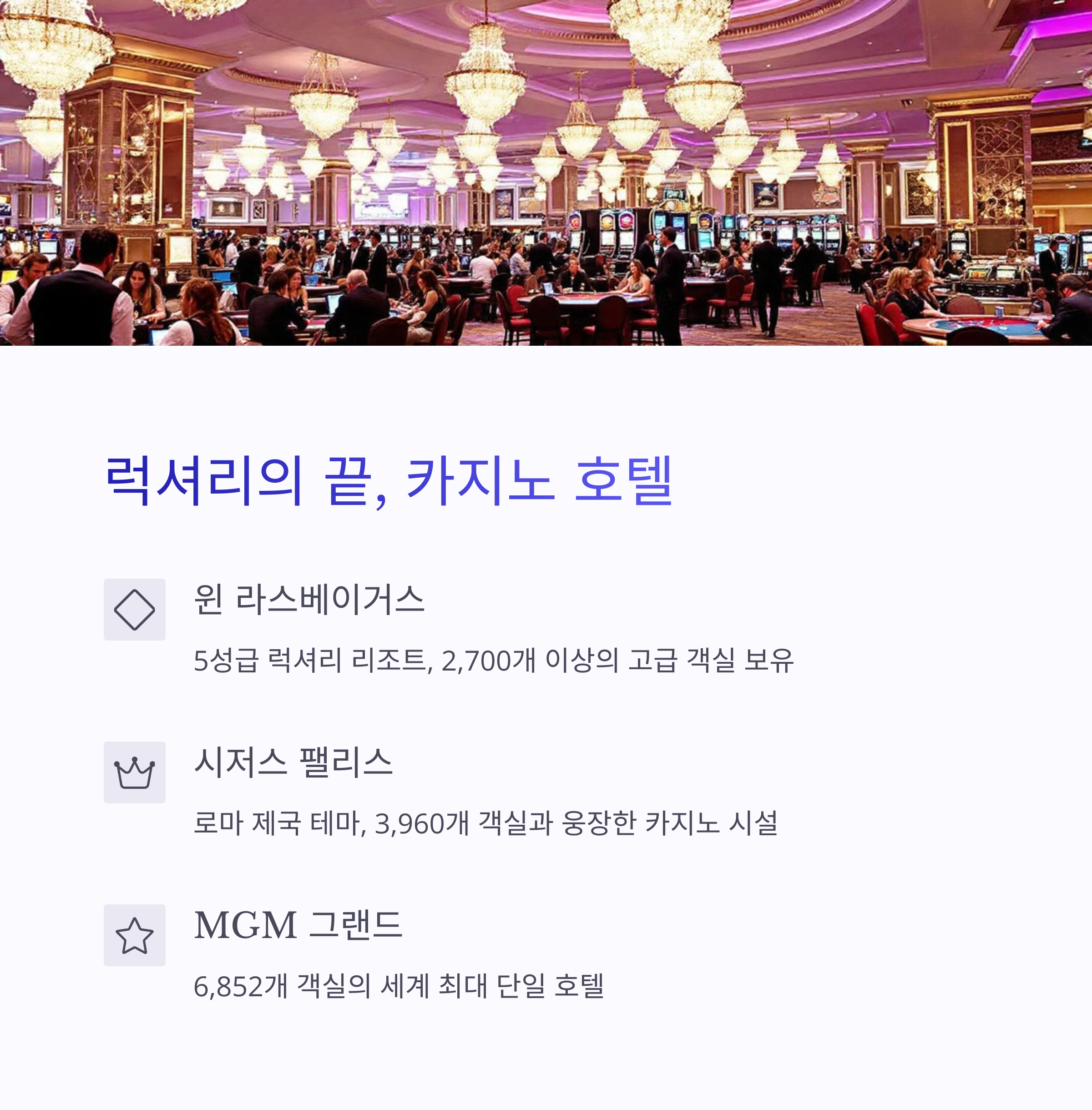 | 추천 카지노 | 윈 라스베이거스, 시저스 팰리스, MGM 그랜드 |