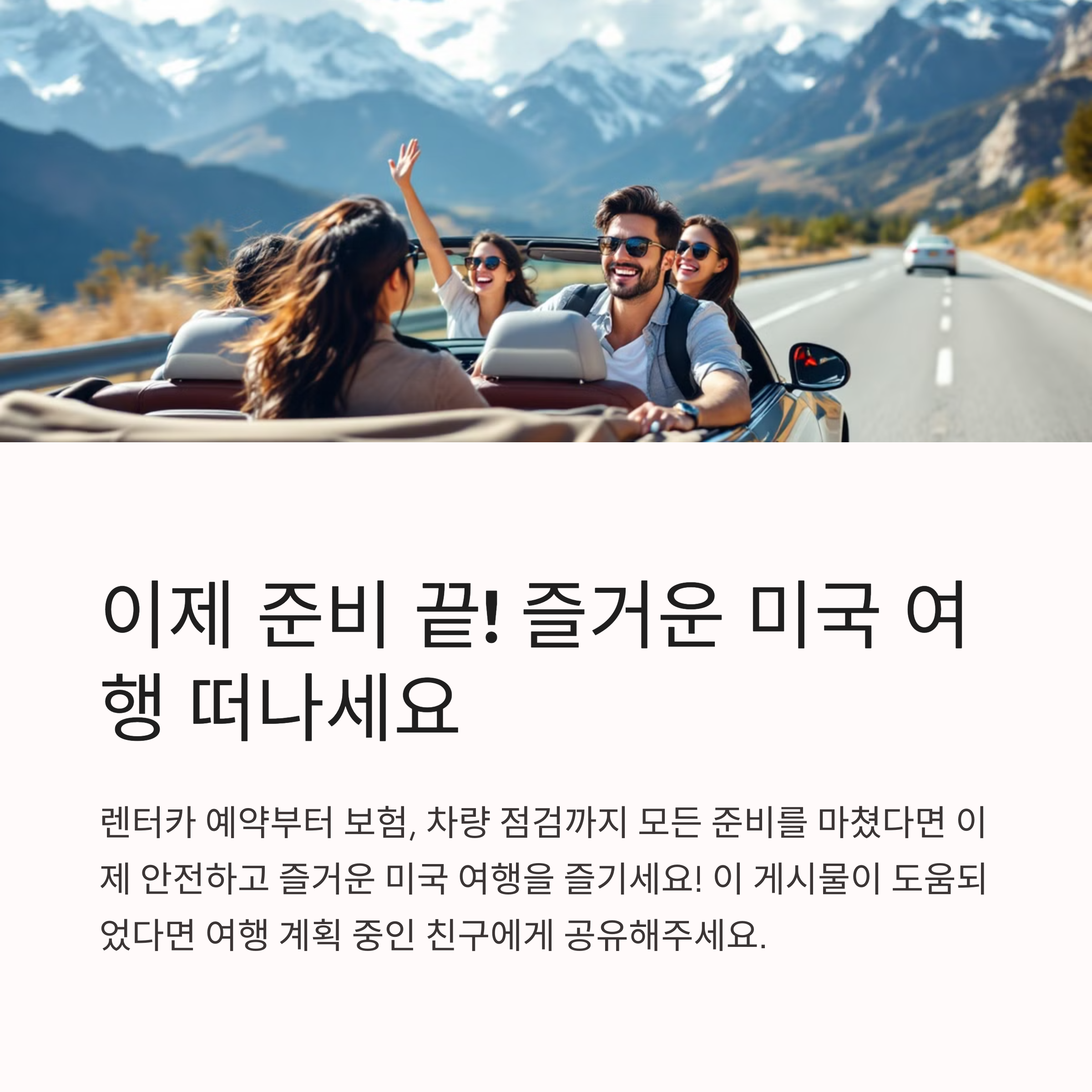 미국 렌터카 예약이 처음이라면 막막할 수 있지만, 차량 선택, 보험 가입, 차량 인수 등의 과정을 잘 이해하면 쉽게 진행할 수 있습니다. 예약 전에 비용 비교를 철저히 하고, 렌터카 업체별 조건을 확인하는 것이 중요합니다. 이 글을 참고하여 안전하고 즐거운 여행을 떠나세요!