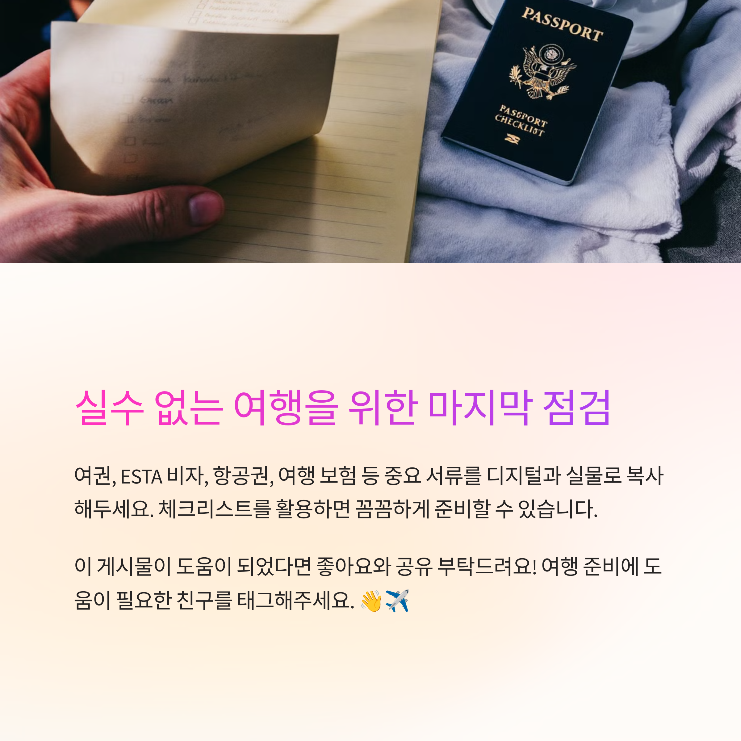 출발 전 체크리스트 한 장으로 걱정 끝내세요!