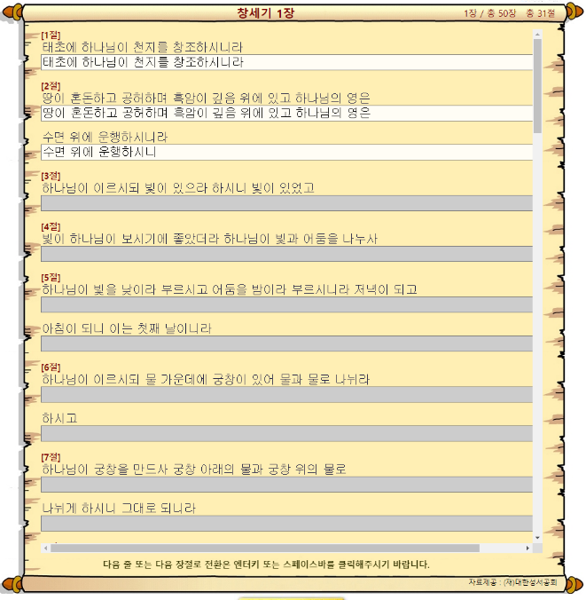 읽기만 하는 방식이 아니라, 성경 말씀을 직접 입력하면서 진행하는 방식이라