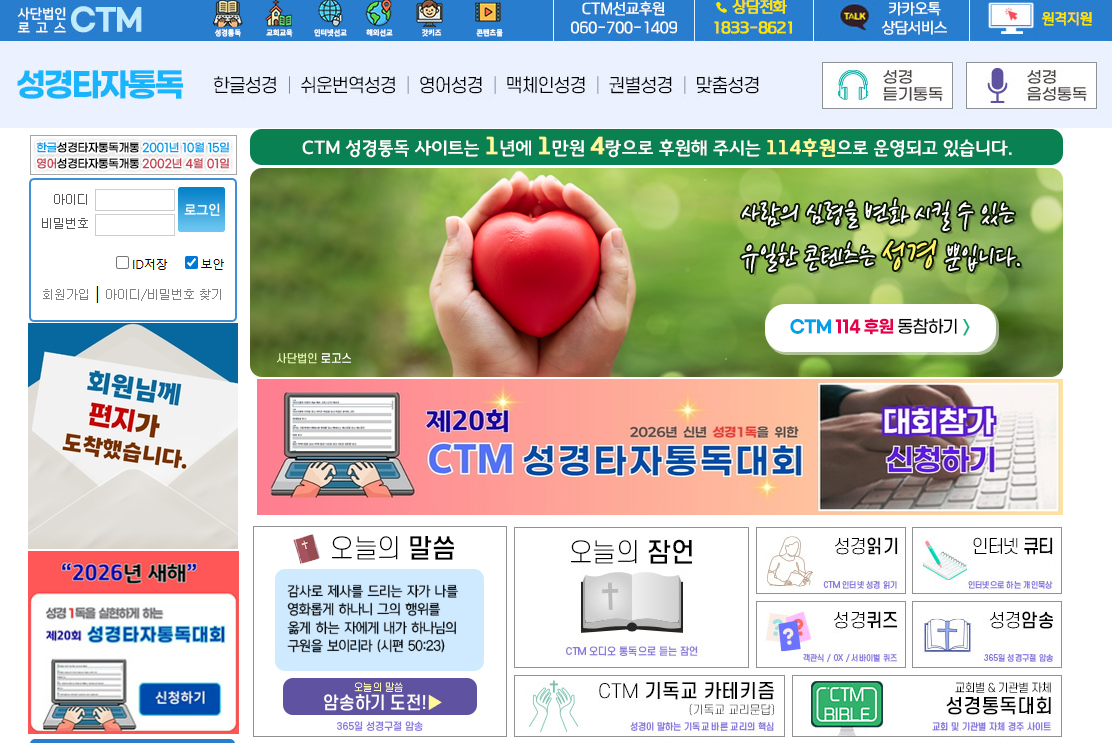 - CTM 성경타자통독 홈페이지 접속