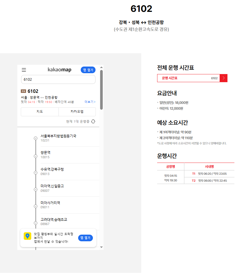 6102번 공항버스 시간표 및 운행정보