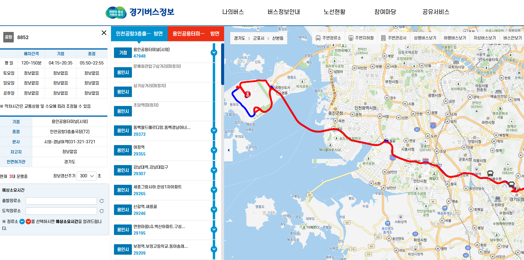 8852번 공항버스 시간표, 요금, 노선 예매 정보를 제공합니다.