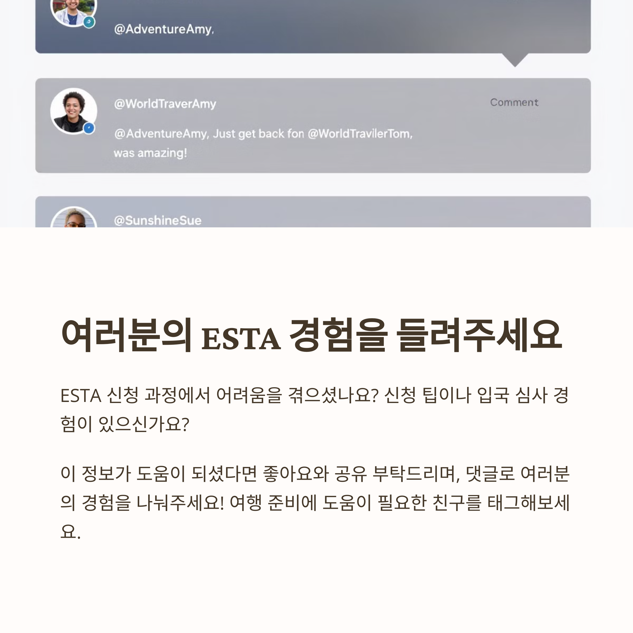 ESTA 신청 과정에서 궁금한 점이 있으셨나요? 또는 미국 여행 중 겪었던 입국 심사 경험이 있다면 댓글로 공유해 주세요! 다른 여행자들에게 큰 도움이 될 거예요.